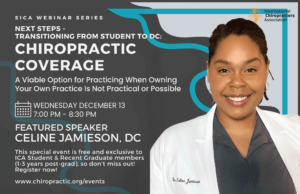 Join Dr. Celine Jamieson as she shares how her Next Steps help transitioned her from student to Doctor of Chiropractic and why she chose Chiropractic Coverage as an alternative to owning her own practice. Q&A opportunity.